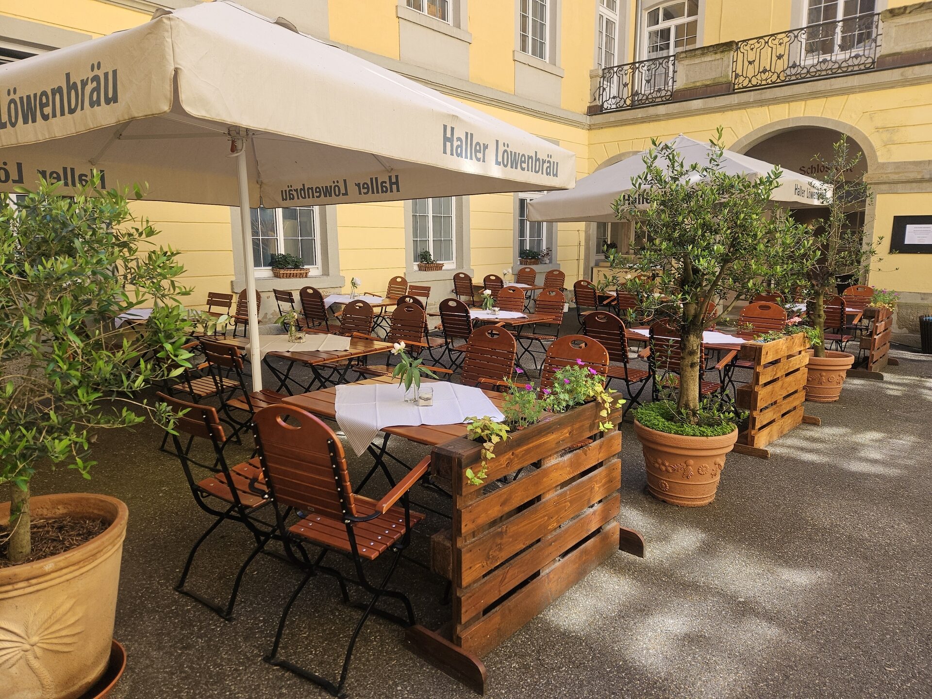 In hoheitlichem Ambiente erwartet Sie im Schlosscafé eine umfangreiche Getränkekarte mit Kaffee- und Teevariationen, regionalen Bieren, ausgewählten Weinen und saisonalen Drinks. Dazu gibt es Hohenloher Leckerbissen und frisch im Schloss zubereitete Heumilch-Eiskreationen. Eine kleine, aber feine Speisekarte mit knackigen Salaten, Spezialitäten der Bäuerlichen Erzeugergemeinschaft Schwäbisch Hall und weiteren kreativen Gerichten runden das kulinarische Angebot ab.